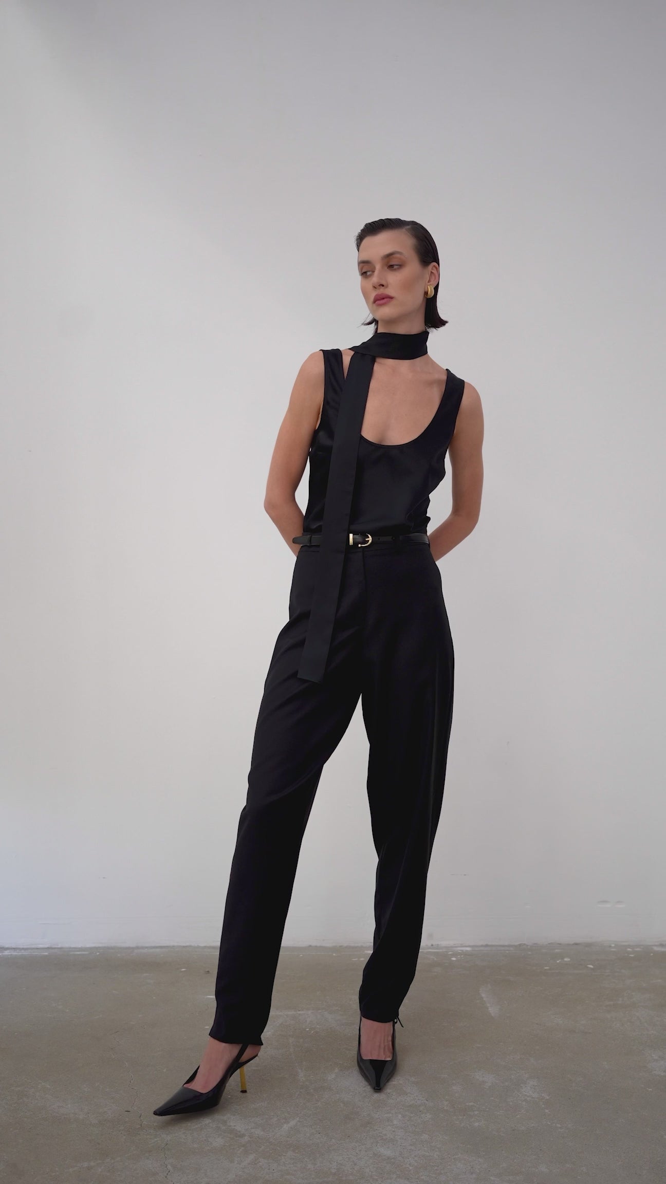 Spodnie 01 wykonane z włoskiej wełny premium. Ich konstrukcja sprawia, że spodnie są niezwykle wygodne i uniwersalne, a jednocześnie oryginalne w swojej formie. Inspirowane latami 80’, o średnim stanie i z luźną nogawką, lekko zwężaną ku dołowi.
